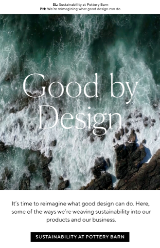 Hover state on Pottery Barn Sustainability Landing Page